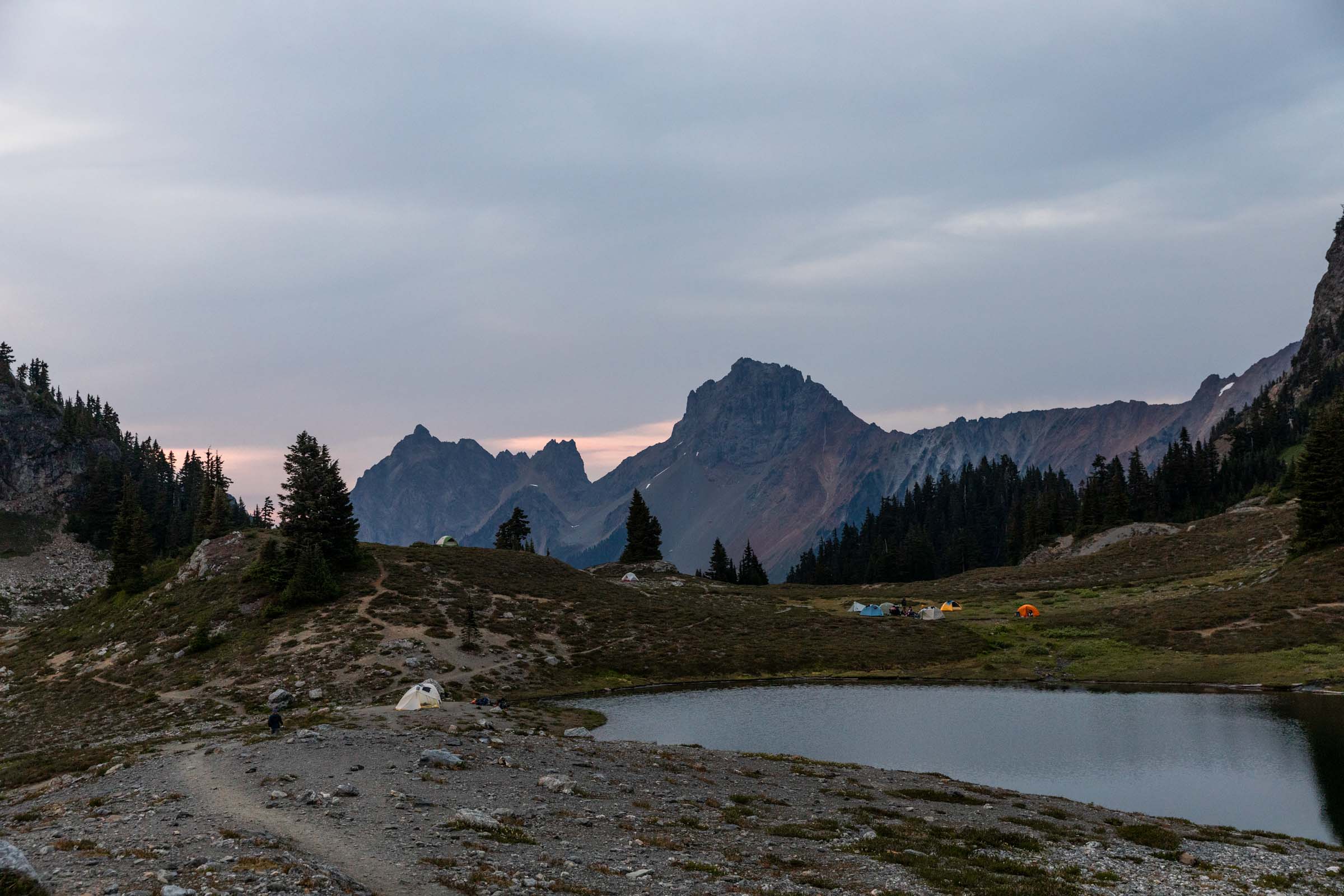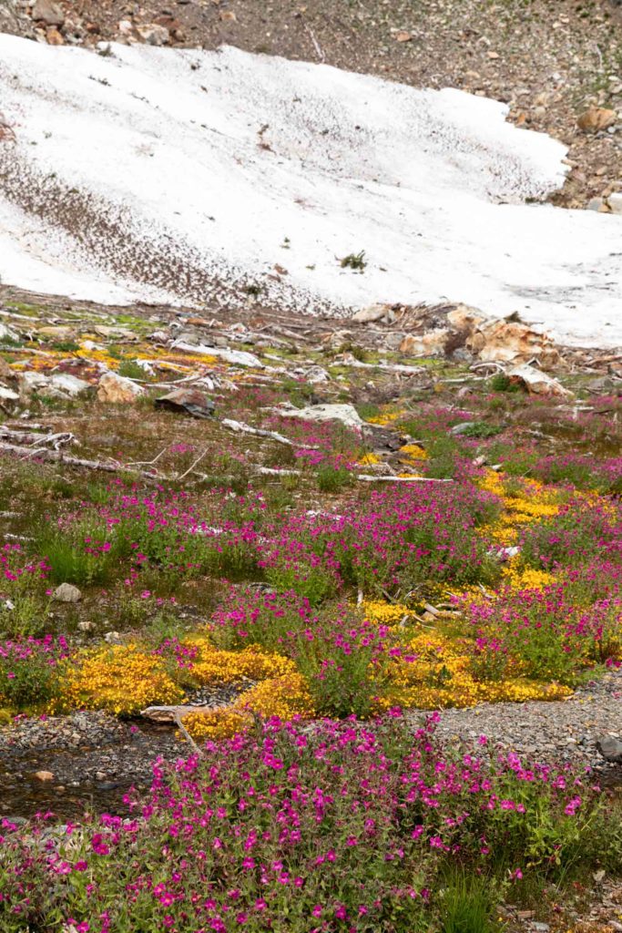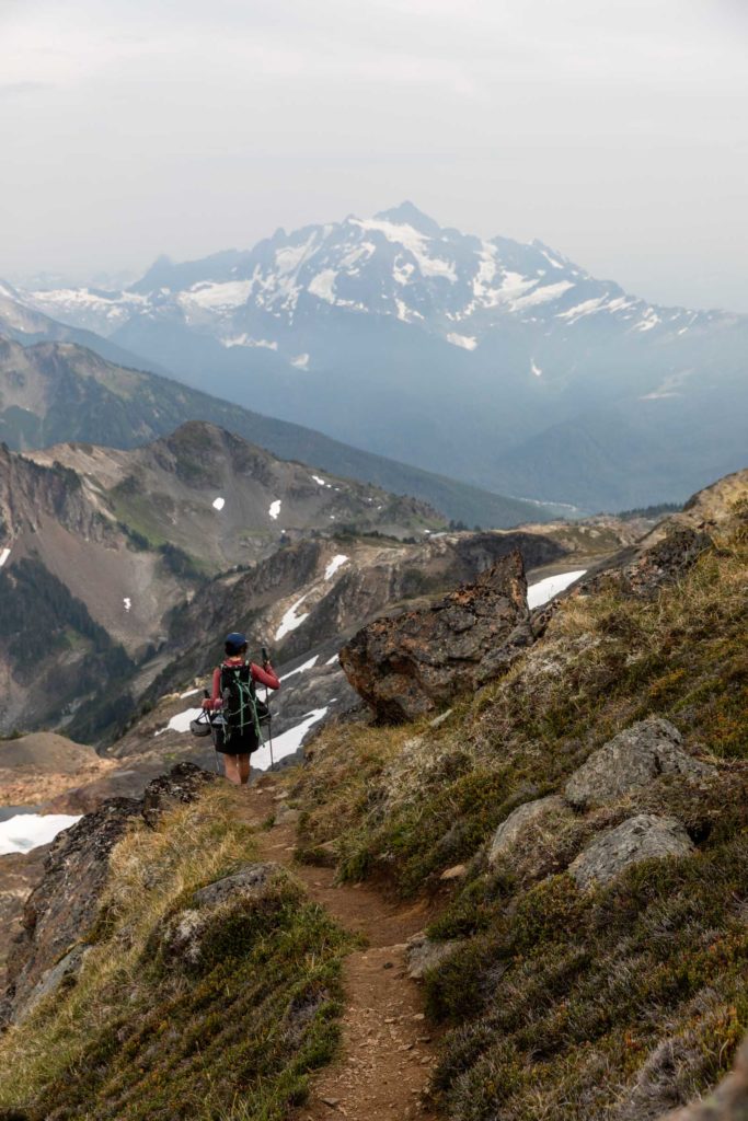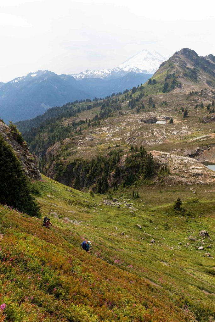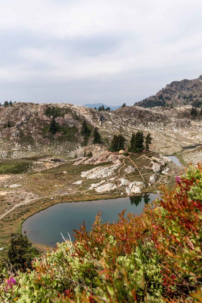 We were planning to backpack a different summit camp but weather pushed us here to Yellow Aster Butte instead. I’ve always wanted to camp here by all the cute tarns, not minding the fact it does get busy and privacy is minimal here. But the lush meadows just were too enticing. And obviously, per usual, I have to tack on a nearby summit. I had already hiked to the true Yellow Aster Butte summit a couple years back, but Tomyhoi was still on my list.