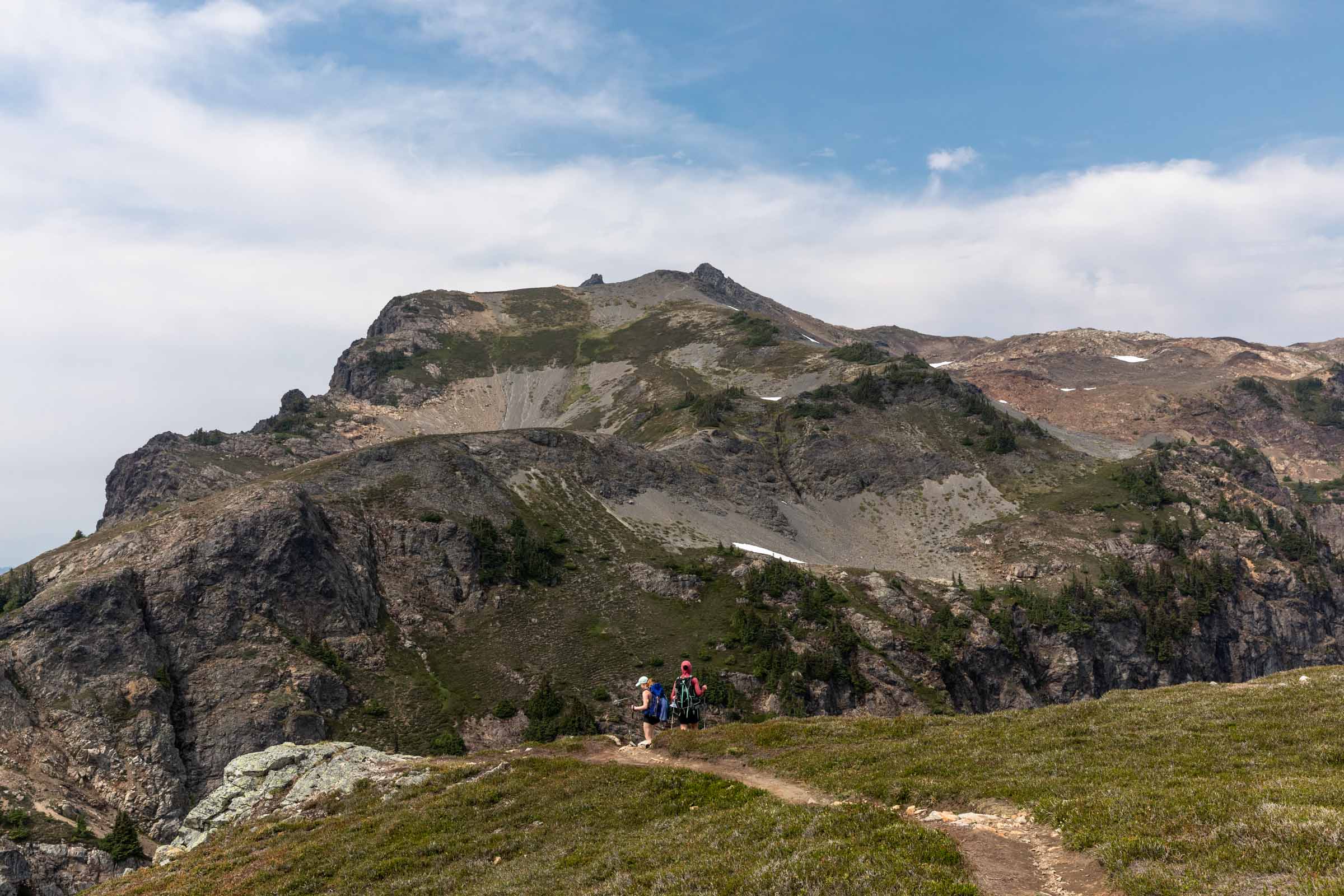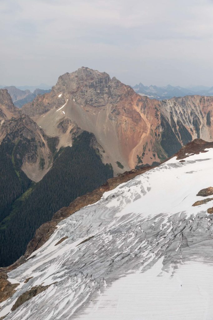 - Tomyhoi scramble: From the trail, it’s best to go over the snow instead of taking the ridge. Light patches of snow late season. Follow the cairns the ridge and take the trail on the left to the false summit. Scramble up the true summit, no more than class 3 moves and short exposed sections. All the rock here is very solid.