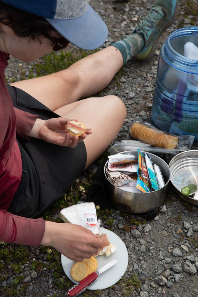 It was amazing having the peak to ourselves, looking at views to Canada and down to Baker. We returned the same way we came. At camp, we made dinner of couscous, sausage, onion, and fig. Recipe courtesy of Cleo. Sunset was more of a wash but we hoped for more colors come morning.
