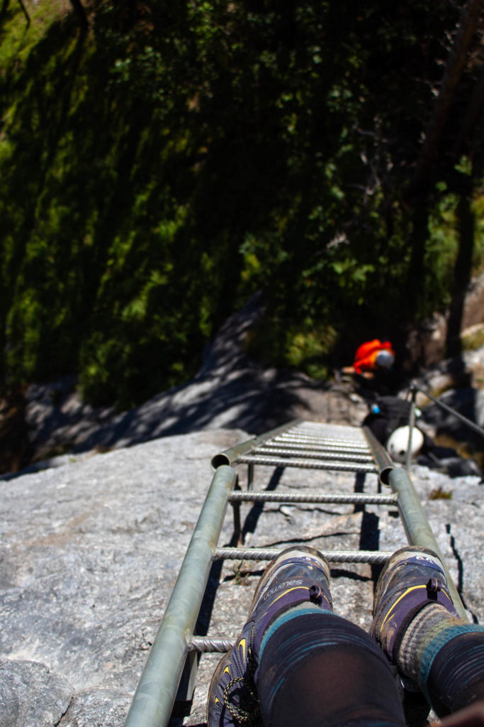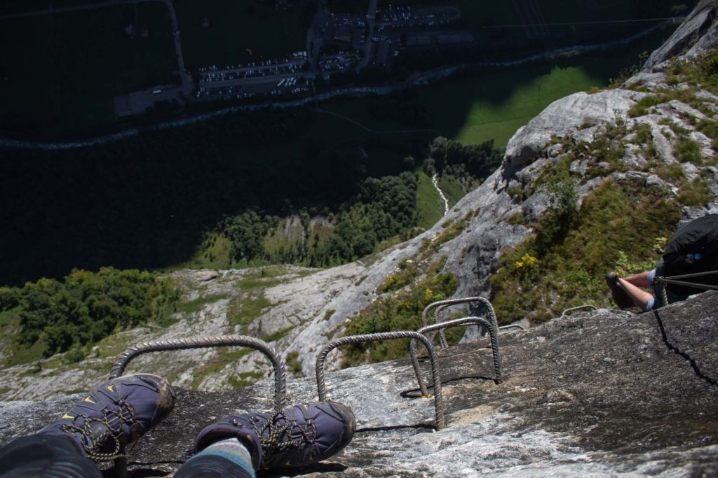 The nice thing about via ferrata is that you can always be clipped up to the iron cables for safety, using the y-sets. You always keep one carabiner on as you move the second carabiner between sections. Although for those with acrophobia, it may still seem daunting when there’s just thousands of feet of air between you and the ground.