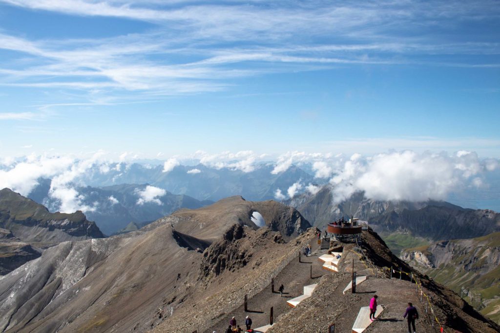 When we reached 9770 ft (an elevation that could easily get people altitude sick), we rejoice to stand at the peak. Technically, you can’t tell what the peak is, since the Piz Gloria of the 007 Bond movie series is situated at the top. There isn’t quite the grandeur of a 360º view like other summits. This is the toll for having the gondola access – though at least even your grandma can come experience these amazing views. However, it was also frustrating that groups would walk down a bit from Piz Gloria towards the trail to take pictures, as if they had climbed their way up. Really? We took a few hours to get our butts up this mountain and watching our step so we would not fall off any cliff edges.