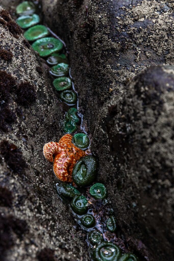 Check out the view point atop the Hole-In-The-Wall cliff for sunset. Whenever the tide is low, check out the tide pools. All sorts of fun creatures are to be found. It takes a lower tide to find ochre sea stars, which are both purple and orange, research hasn’t shown why the 2 colors coexist. They like to feed on mussels and barnacles and live on the lower edges of rocks.