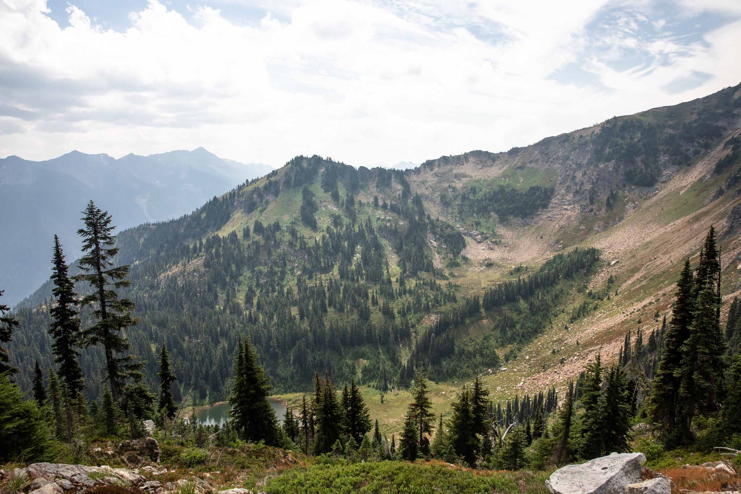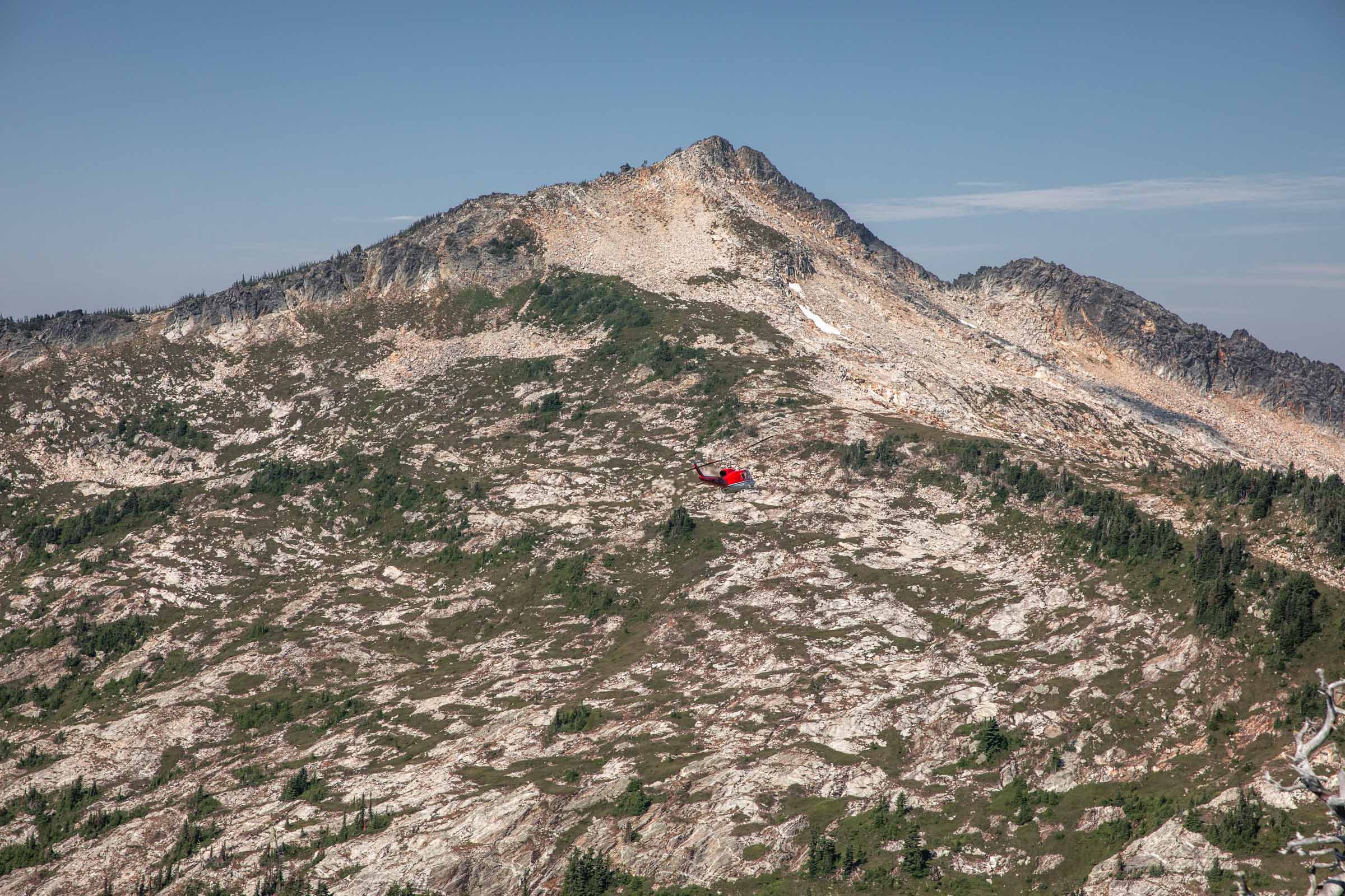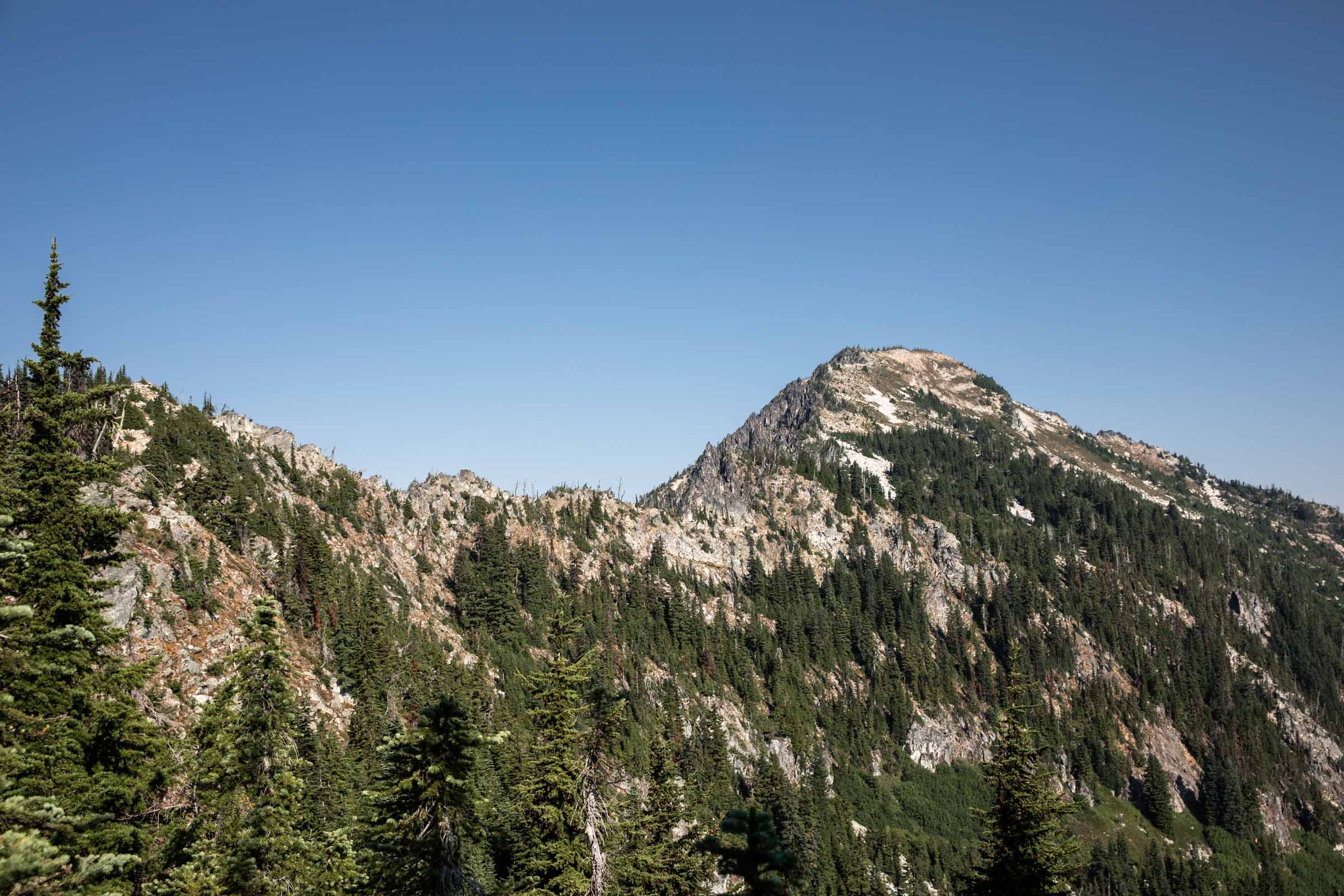 The trail was breezy for us going at a nice steady pace. Recently there was some trail maintenance done and we could clearly tell the difference. Once we turned a left at the fork, away from Lake Merritt, we started to embrace the thick bushes. The trail is still well defined, you just have to turn your trail brain on! We quickly made a right turn to head up the ridge to Mount Mastiff, following the undulations and carefully navigating around some cliffs. Nothing felt more than a single class 3 move at a time, honestly fairly class 2 if you are good at navigating and following the faint trail. Try to stay close to the ridge, dropping to the right (east) only if cliffs appear. The summit of Mount Mastiff was not terribly remarkable, although it was awesome to be able to see Lake Wenatchee. Plus there was a helicopter doing a few rounds in the basin adjacent to us. Weird!