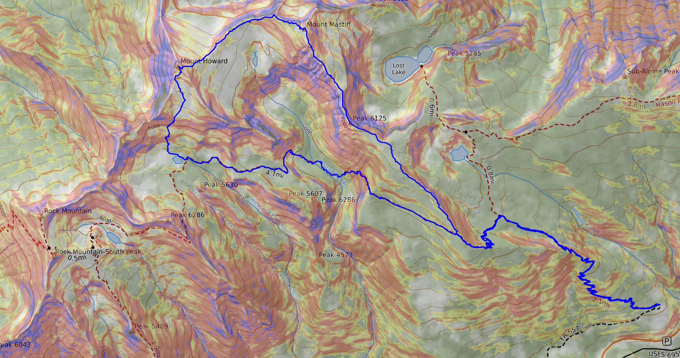 - Approaching Mount Mastiff first, when in doubt, stay east of the ridge. Otherwise stay along the ridge for the whole route. Aim towards Lake Crescent after Mount Howard, avoiding the cliffs. Some bushwhacking may be inevitable.