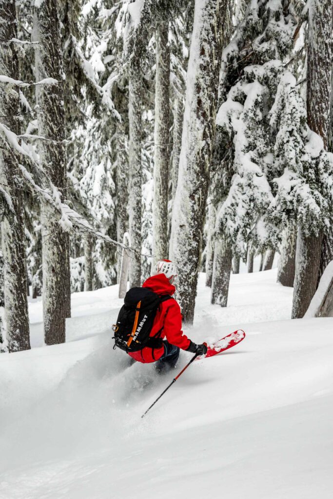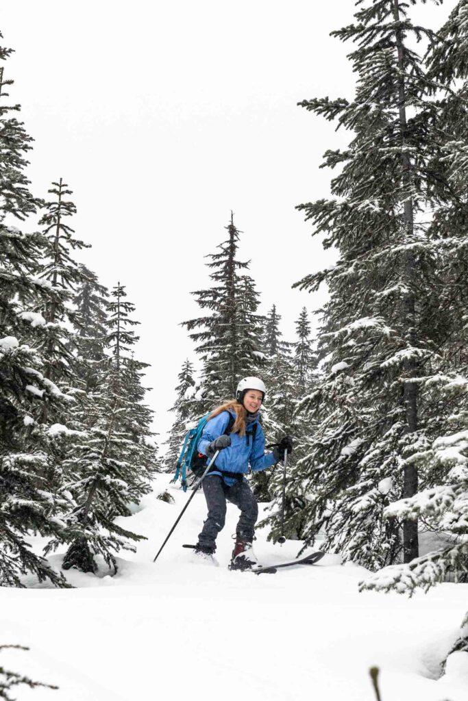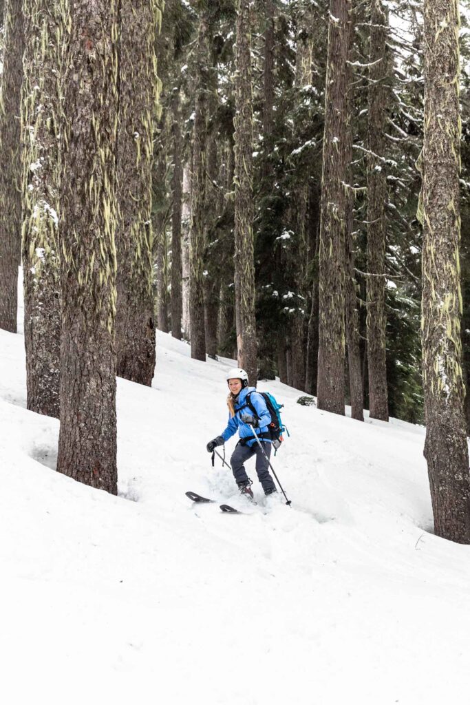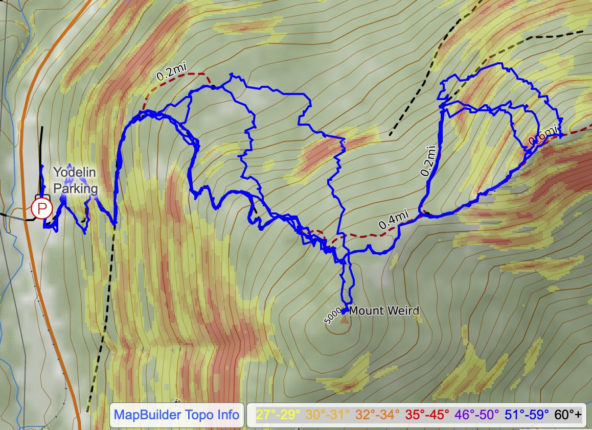 The most recent trip up we saw plenty of groups, yet we kept finding fresh snow to ski on and felt like everyone was somehow spaced out enough. Occasionally, you have to trust entering the thickets before the old growth trees reveal themselves. The exit out is best by going down from near Mount Weird and generally following the skin track out. Otherwise you’ll definitely end up in dense trees even if you find a nice opening for a little bit.