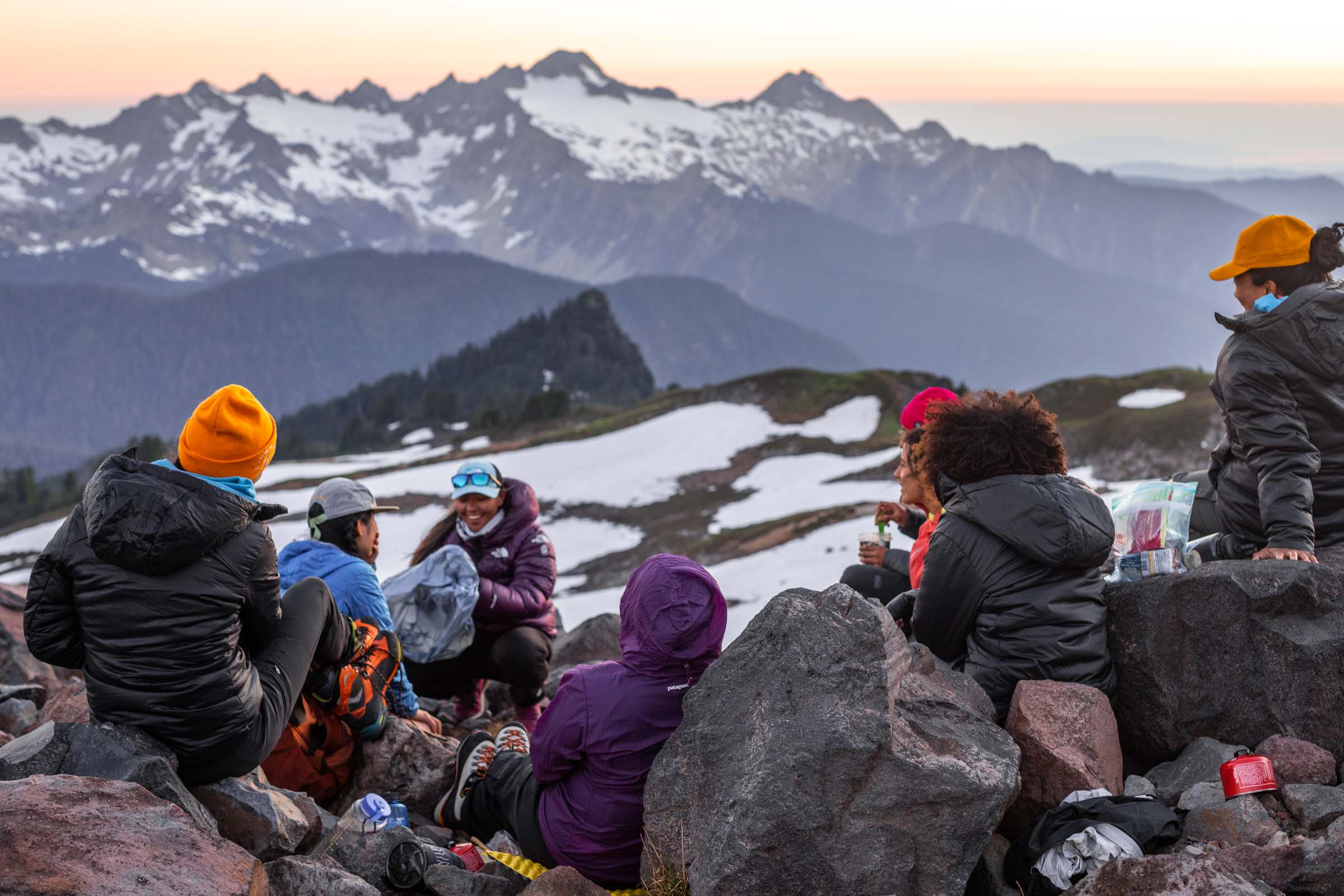 I recently had the pleasure of photographing the first Women of Color mountaineering course on Koma Kulshan (Baker) as a collaboration between Trail Mixed and Climbers of Color. When I was first saw the call for photographer, I couldn’t have been more excited! I love taking pictures and what better way to support a group than documenting the course? The several months leading up to the climb, it was a tight scramble to find other people for my rope team. Between a lack of female mountaineering photographers (especially of color) and needing schedules and skill levels to align, we didn’t finalize the team till basically the week before. But boy was I glad to have a team because a solo ascent would not be wise for a mountain with open glaciers.