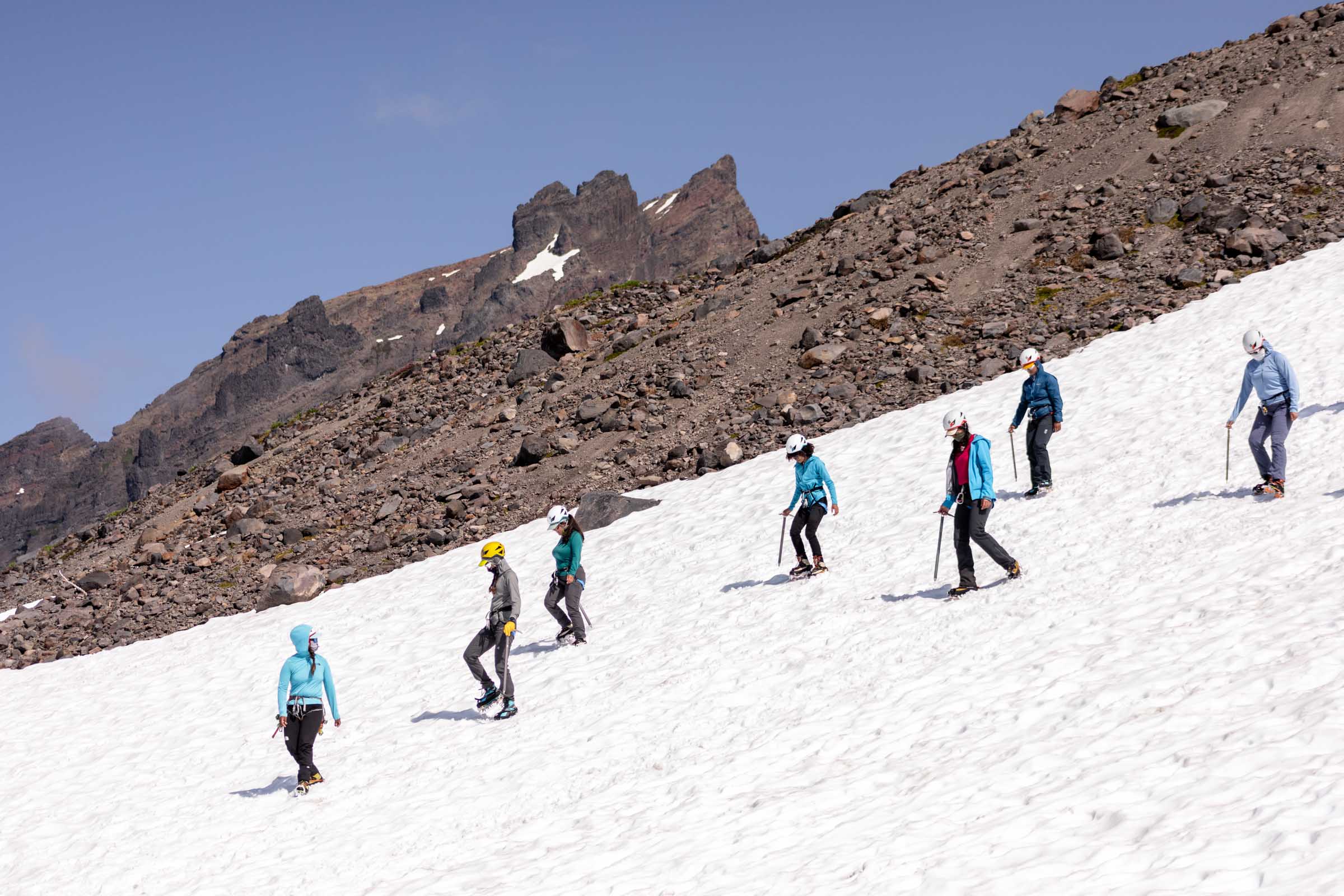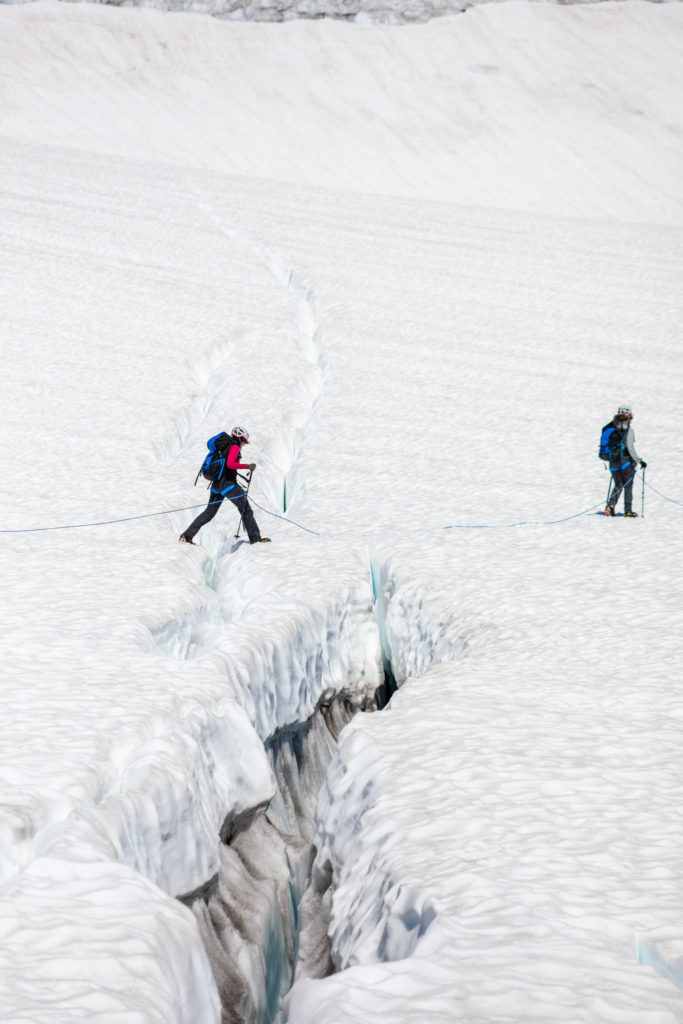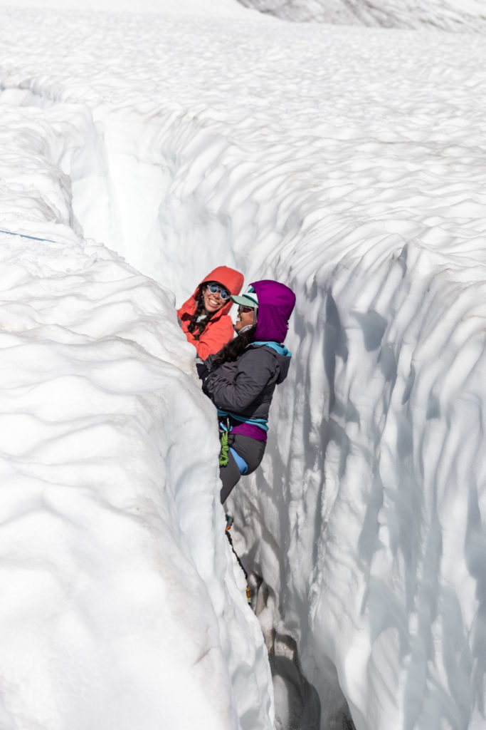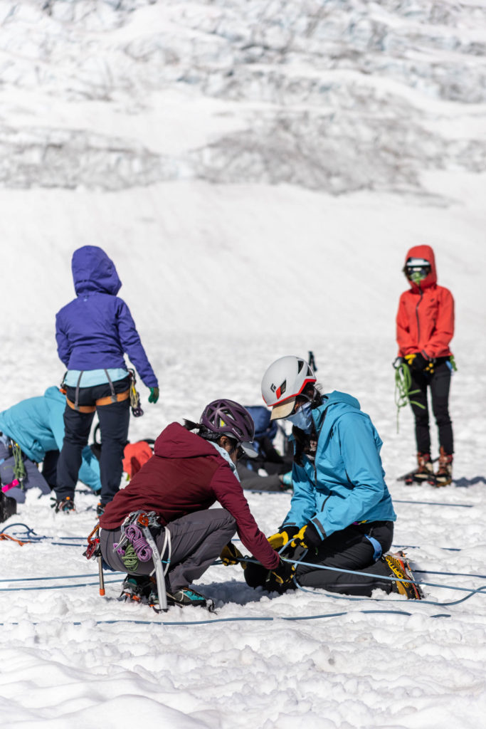 After tying ropes and making their own prusiks for self-rescue, they all worked on snow travel skills with an ice axe and crampons. The whole morning I was thinking how cool it would have been had I taken a course like this. With other women, with people of color, learning all these skills at once. Instead, I learned bit by bit over the course of a couple years, self-learning and mentored by friends. And for the second half of the day, we went out on the glacier for some crevasse practice. And truthfully, I had never climbed in and out of such a crevasse, so it was kinda fun for use photogs too!