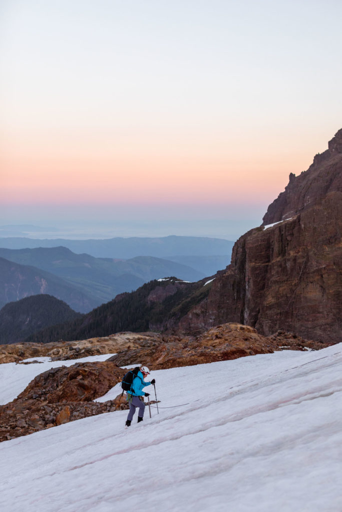 As the sun set and everyone ogled eyes at the colorful sky, the impressive Dawa taught us how to use a wag bag. Somehow it was comical even through the lesson. Side note: you can usually get wag bags or blue bags from the ranger station. They’re super important when you’re traveling on snow and rock (aka for mountaineering and other hikes) because poop can’t decompose like it does several inches into soil. If you haven’t heard of Dawa, she’s a Sherpa and the first female Nepalese to become an international guide with her IFMGA certification. There’s articles about her, but meeting her in person and seeing her humor come to life is something else. She’s got this relentless determination and selfless heart, truly a role model in so many regards. In some ways, it’s intimidating to know how strong she is to have climbed multiple 6000+m peaks and then reality pulls me back and she’s just another mountain lover sharing her joy with the world.