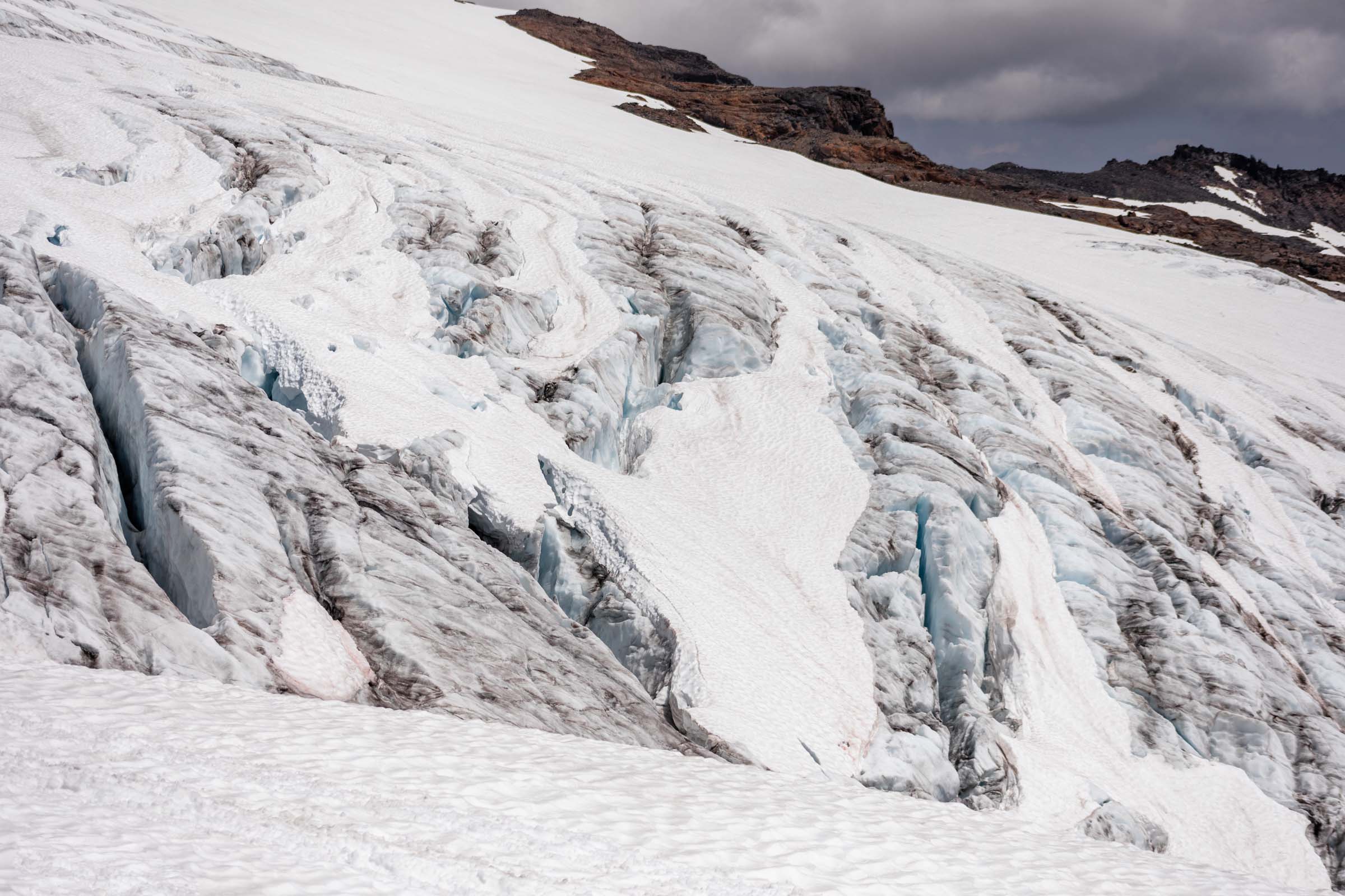 - Beta here is probably irrelevant at this point, and not map since it can be found on many other resources (follow the Railroad Grade and then navigate the crevasses to the summit). Generally, the crevasses to walk over were fairly benign in terms of availability to walk around or step over. There were some icier sections that don’t really need protection but a more taut rope would benefit newer mountaineers. Apparently it is still skiable from the Roman Wall but down Squak.