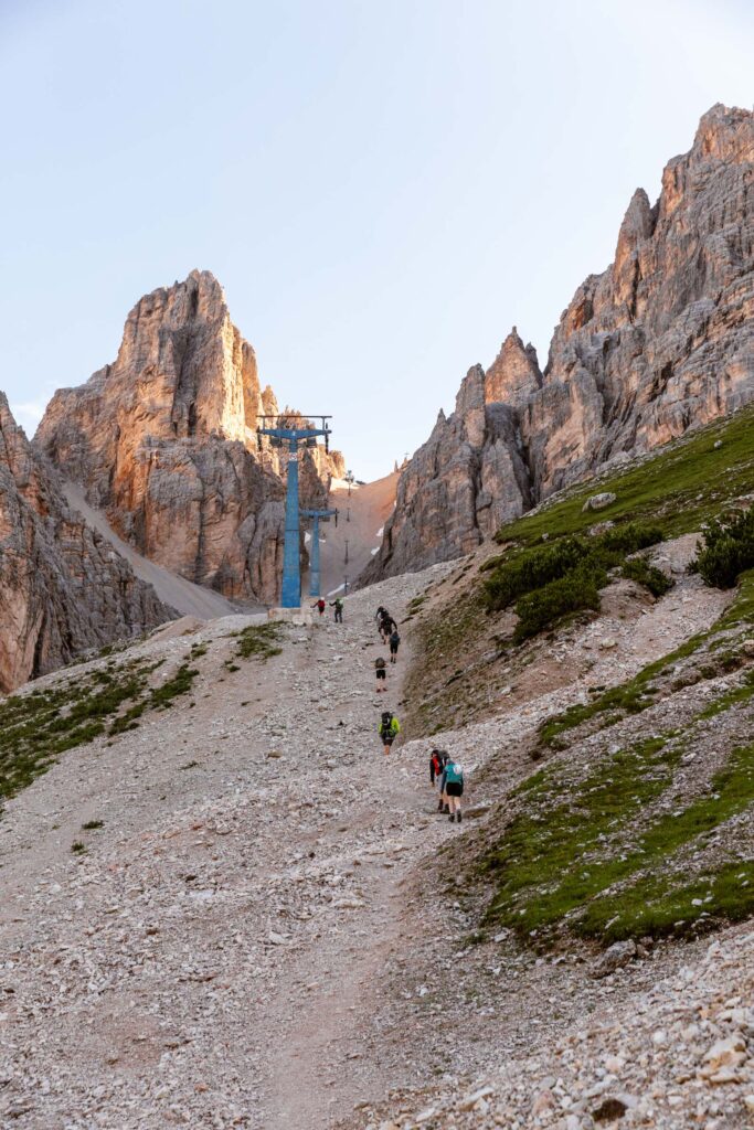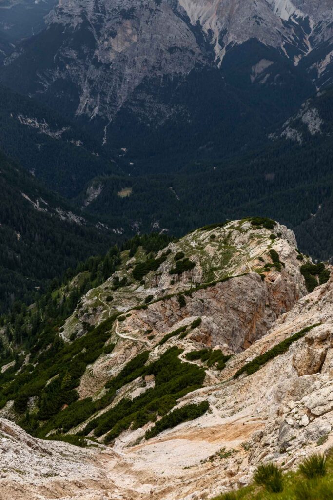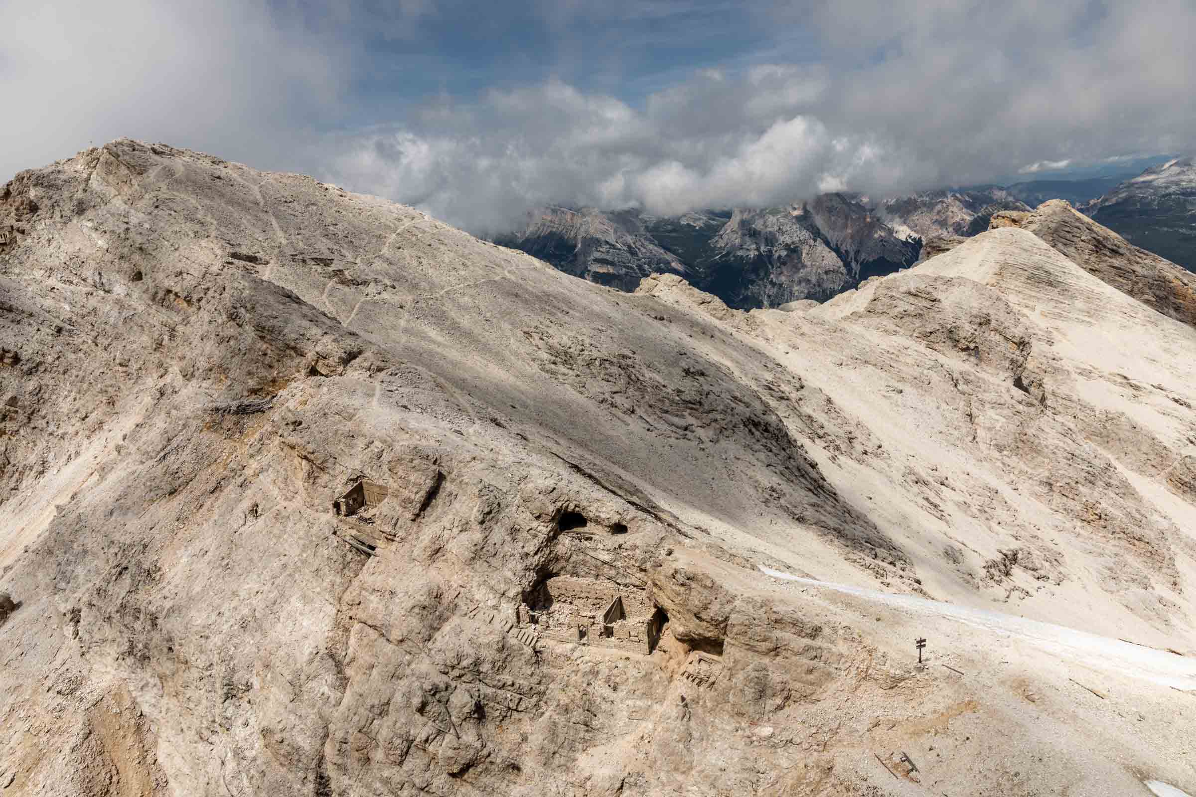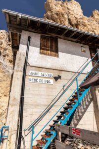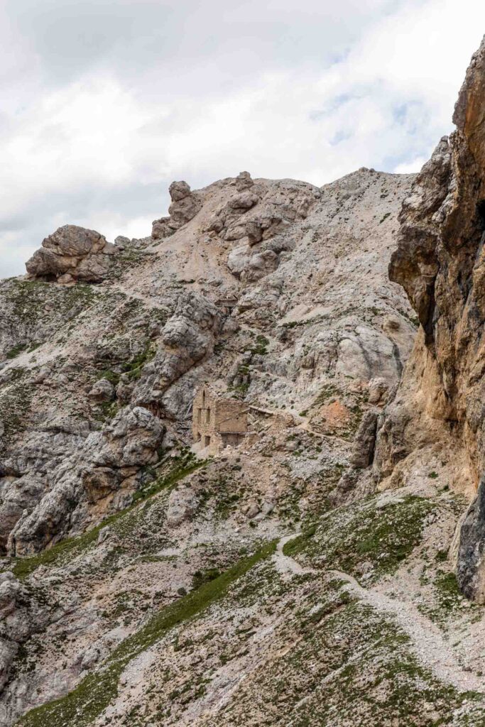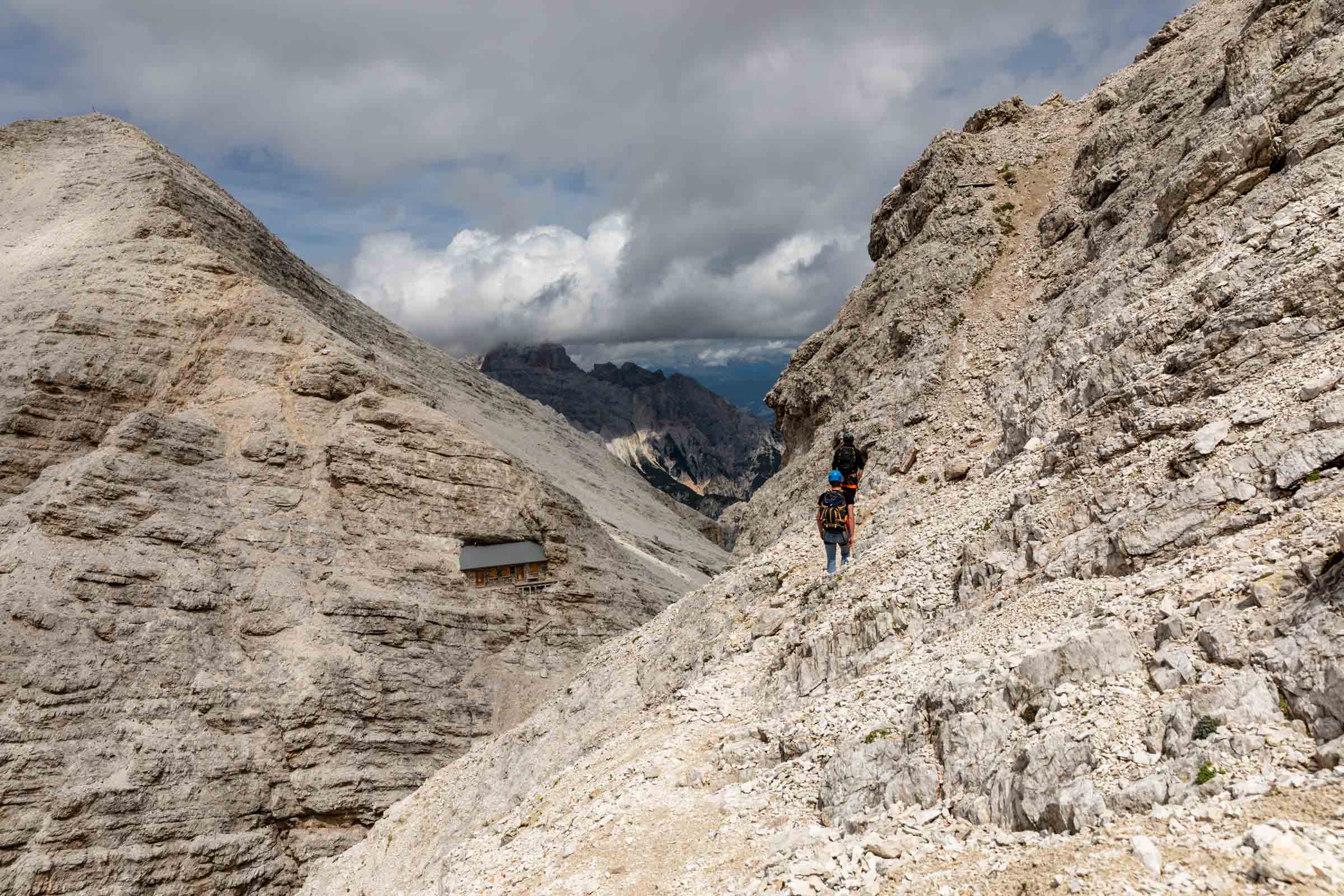 - At the top of the climber’s trail to the ridge, you’ll reach the former Rifugio Lorenzi. From here, you can opt to do the harder Monte Cristallo via ferrata going east.