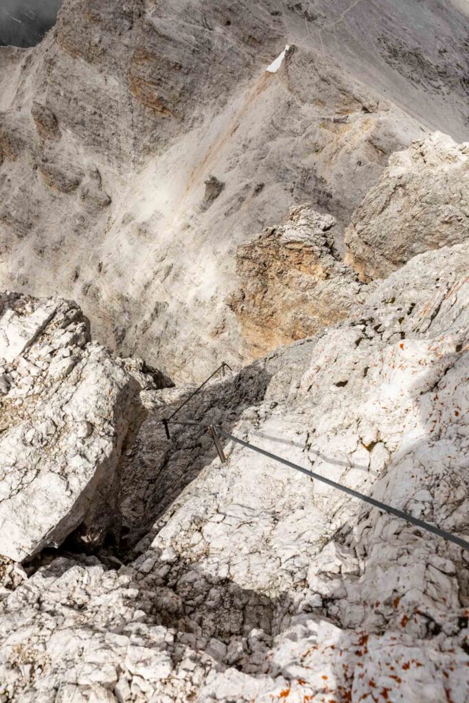 Once I bagged the Cristallino, I saw two guys who started to catch up to me. Eventually, we leap frogged a bunch from taking different breaks and I learned that they’re Belgian! And doing in jeans gave me a good laugh – what you wear is not indicative of your ability nor should it prevent you from doing anything really. They were equally as speedy and it was fun to have people somewhat nearby. This via ferrata is particularly special because it passes through many old WWI artifacts and remnants from buildings to hiding holes. I expected an eerie feeling, but instead I felt more exploratory than anything. Like wow, people built this 100 years ago and it still remains. Or thoughts like, what was it like to be up here 100 years ago? Probably similar except with different gear. Via ferratas were built to protect soldiers and later, travelers on trails that had high exposure.