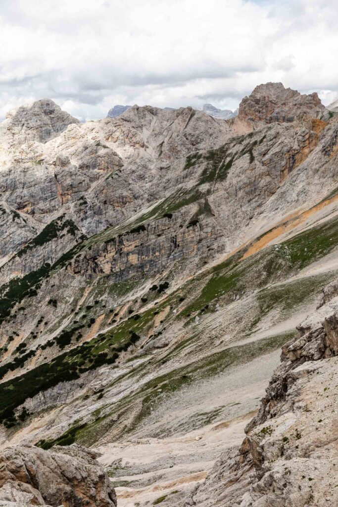 The sun started to shine again, a perfect recipe for a sweaty back. And immediately I felt less lonely. It’s not easy hiking alone and staying motivated, but I was determined to get to the hut before dinner time. One foot in front of the other. Ignore the throbbing soreness in my quads. Enjoy the green larch trees. And soon enough I started to see where I started, that fateful gully that started it all and the lift that took me to that starting point. People’s voices carried over the trail and I was happy to see human faces again. No time to dilly dally, I headed straight down the opposite side of the col. Somehow there was the world’s faintest trail and I felt weird for trampling the grass, but it exists on the map and it felt more efficient than taking the gravelly road. Bouncing through the tall wildflowers, I ended up on a trail again and headed towards Passo Tre Croci to catch my trail to my next destination. Go go go, clock is ticking. If I didn’t make it to the hut by 6pm, I would have no food and probably would have to hike back out to the restaurant by the main road. But that’s another story to tell. 8 hours after taking the lift, I had completed the full loop of the Ivano Dibona via ferrata all by myself with an overnight hut pack. Maybe don’t pack your schedule like me or pack your bag like me! But this was definitely still the highlight of my whole trip!