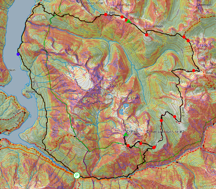 - No camping permits needed if you don’t camp along Ross Lake (marked above). That means one of your days will be at least 14 miles long, which is probably easiest to do on your way out for more downhill. If you want to camp along the lake, here’s the official map of choices: North Cascades Wilderness Map
