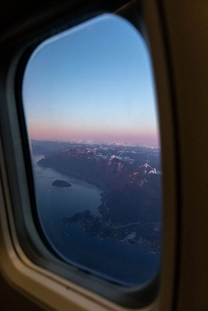 If your flight is super early, you can book a cheap hotel and see if they can let you leave your car there for a small fee. You may need to do the math yourself to see if that is better or parking in the airport lots. On the flight, I’d recommend picking a seat opposite where the sun rises or sets. The sunset seats were worth it! The alpenglow was incredible looking over the sea-to-sky highway just before landing in Vancouver.