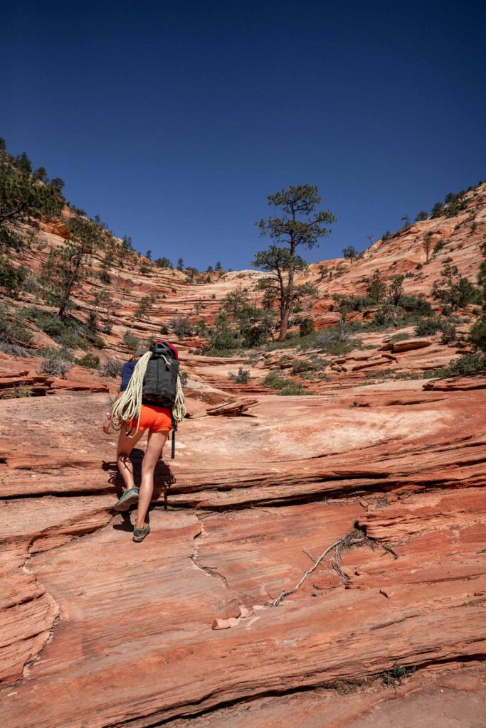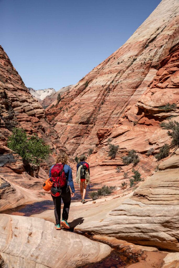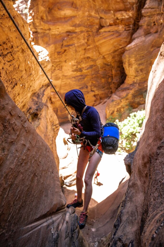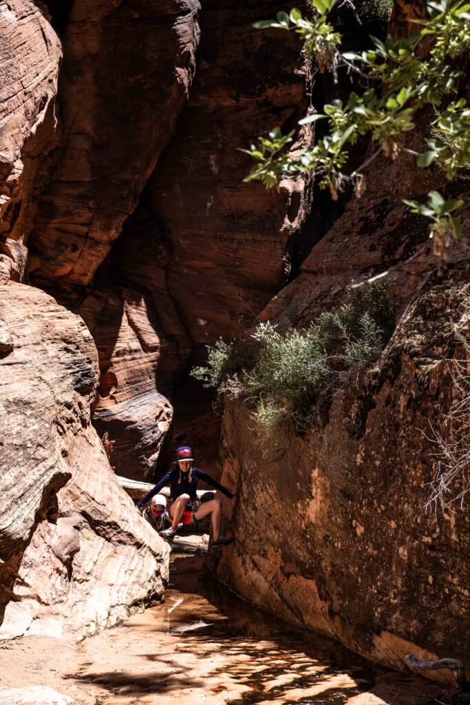 Out of all the canyons we did on this trip, Spry Canyon required the most hiking. In the summer, it’s super important to start hikes early enough so you don’t overheat or dehydrate too fast. It helps to get your permit the day before so you can start earlier than the ranger station opens. For us, the canyon was dry enough that we didn’t need wet suits.