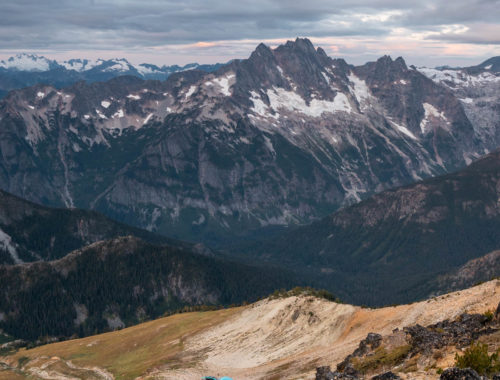 - Start at the PCT parking, cross Hwy 20 and start heading down the PCT and watch for signs for Stiletto. Once you reach the lookout site (no lookout unfortunately), the rest of the way is however you wish to go. With snow you can take any path, but if there isn’t snow, try to stay on dirt trails if there are any.
